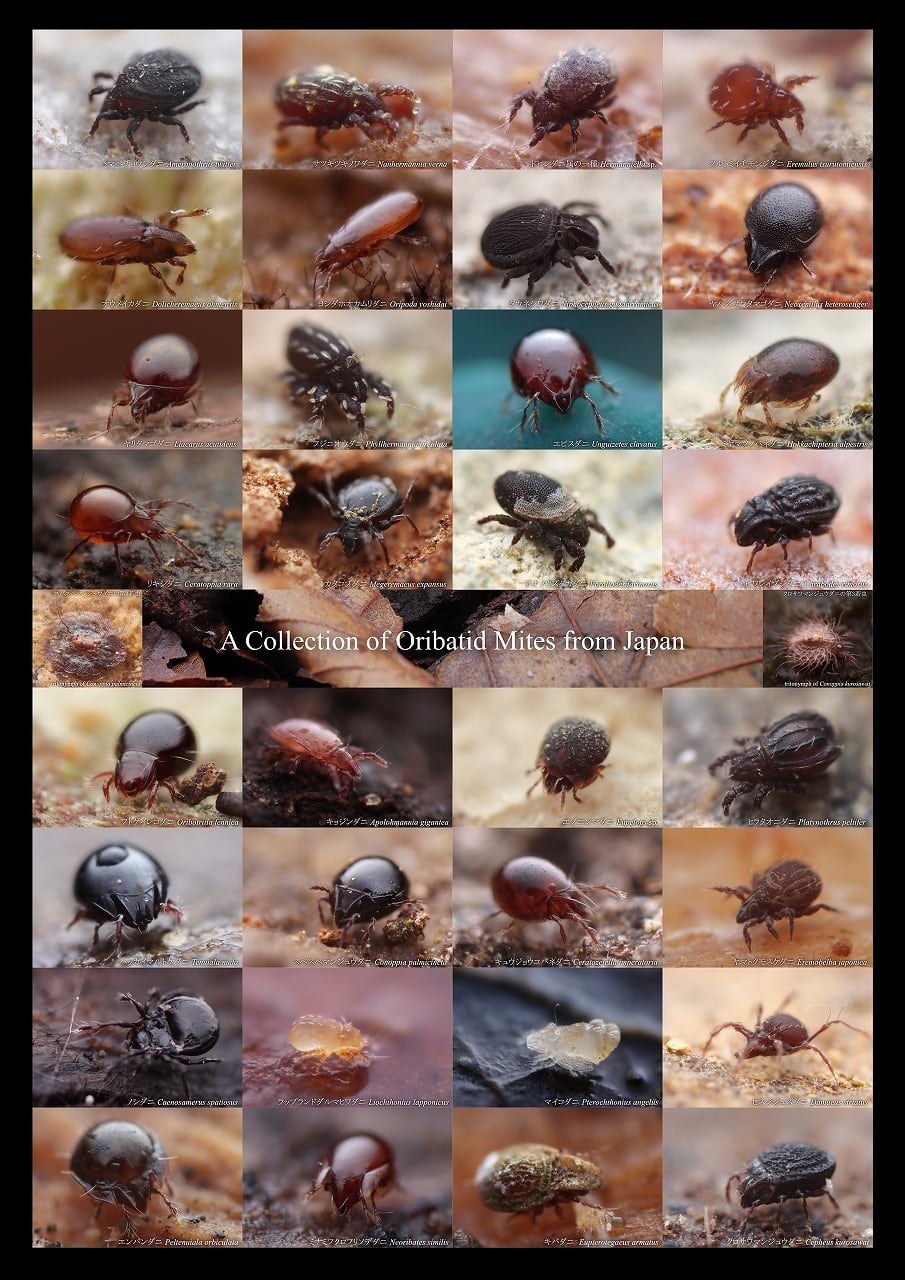 大きさが0.2mm~1mm超という極めて小さな体のため、肉眼ではその姿をはっきりと観察することはできません。全て野外で見つけて現地で超高倍率マクロシステムで撮影した写真を用いてポスターにしました。その多種多様な姿をご堪能していただければ幸いです。